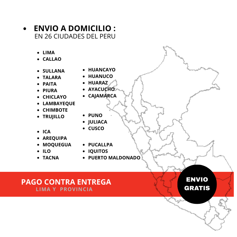 El envio es GRATIS a todo el Perú, para lima y provincia.